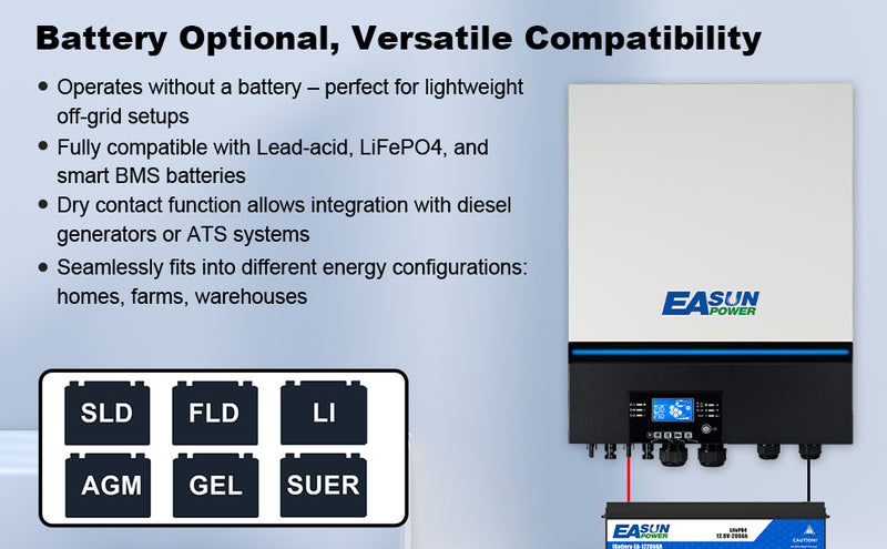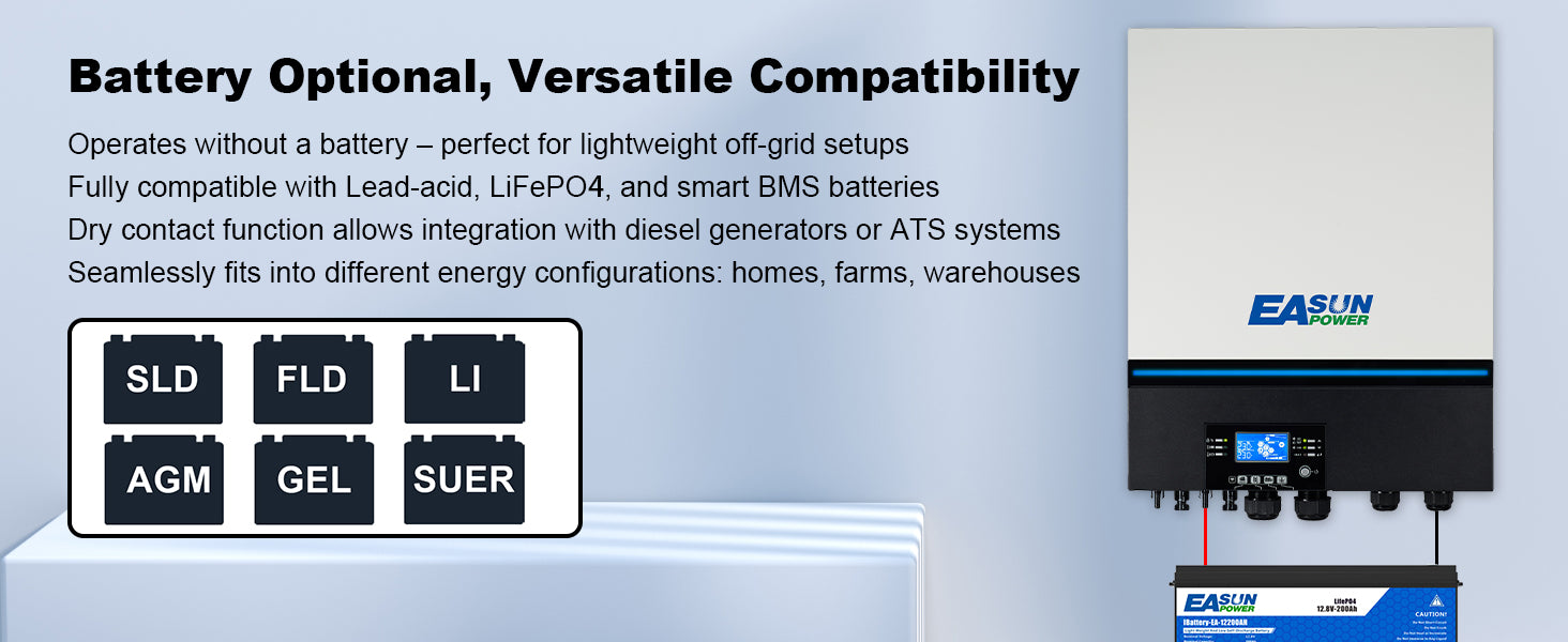 Expand your energy system effortlessly — run multiple inverters in parallel for scalable power output. By connecting three identical units, you can build a true 3-phase system, ideal for industrial applications or high-demand households.