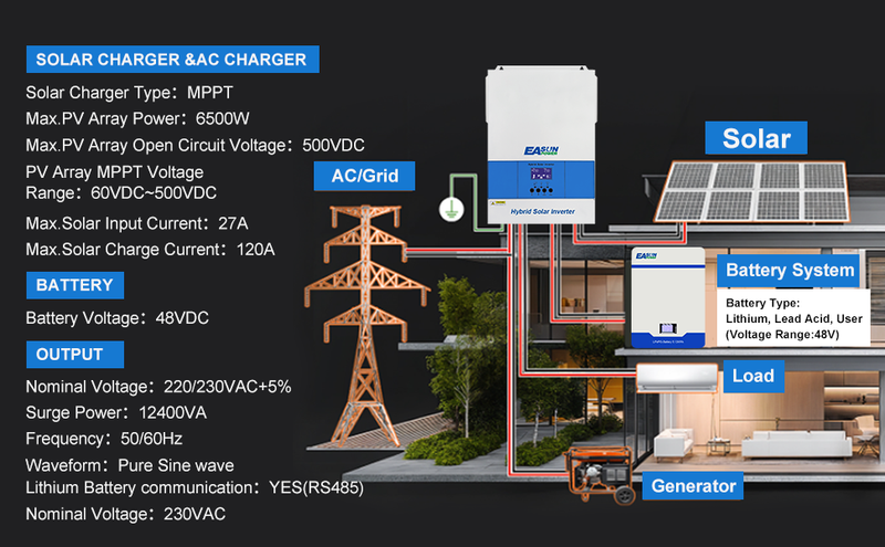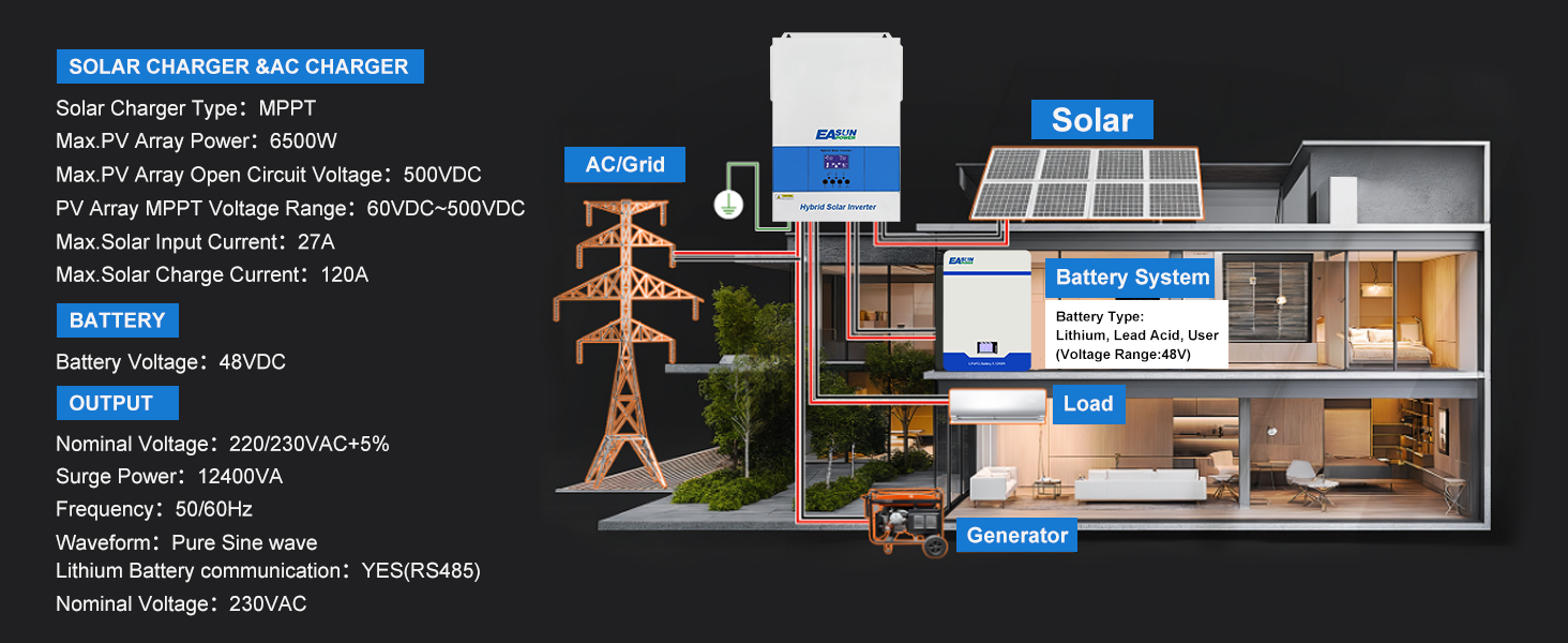 Built-in RS232/RS485 communication ports ensure seamless BMS integration with external lithium batteries, enabling a smarter, safer, and more efficient energy management system for your home or business.