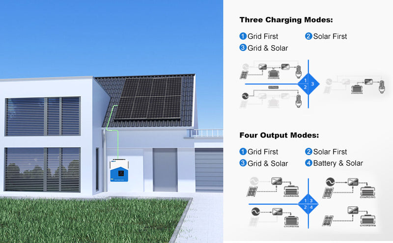 - Supports Multiple Output Priorities – UTL, SOL, SBU, or SUB selectable for optimal energy management
